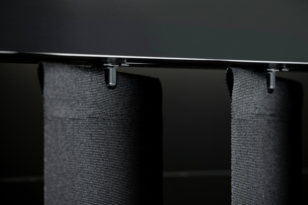 贅沢感がある電動タイプの製品は、ベルト駆動の機構によりカーブの加工が施せます。壁に固定されたスイッチ、FMリモコン、その他の制御システムによって操作できます。